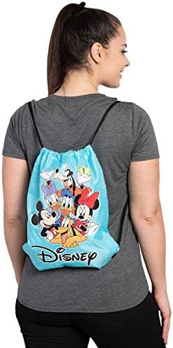 Disney Mickey Mouse tote bag - officially licensed. The sling bag has Mickey Mouse, Minnie Mouse, Daisy Duck, Donald Duck, Goofy and Pluto on the front. The bag is LIGHTWEIGHT (not for heavy items) and has drawstring pulls on each side that can be used for carrying. Bag is non-woven, water-resistant and wipes clean. Measures 12" x 15" laid flat.