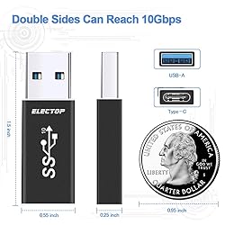 - Product Basic Information:: Name: USB 3.1 GEN 2 Male to Type-C Female Adapter Brand: Electop Function: Charging & Data Transmission Color: Space Grey Size: 26.7*14*6.6mm Weight: 8g/pc Package List: USB 3.1 GEN 2 Male to Type-C Female Adapter *1 Advantages: 1.Convert USB 3.1 Male to Type C Female. Plug and Play,very convenient! 2.Support your cable or devices(with type-c male plug) to connect a charger,computer and other devices with a USB Female port. 3.Multi-function: Support Data Sync(OTG) & Charging.You could have a look at the third picture to know its functions. 4.Updated USB 3.1 Technology: Made with high quality material & strict model to achieve. 5.Real super speed up to 5 Gbps data transfer rate!(backward compatible with USB 2.0) What You will Get: 1x Type C Female to USB 3.1 A Male Adapter
