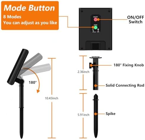 - [DISFRUTA DE 8 TIPOS DE LUCES DESLUMBRANTES] -- Las luces de cuerda solares tienen un botón de ENCENDIDO/APAGADO y un botón de modo. Hay 8 modos diferentes para seleccionar, incluyendo ondas, combinaciones, desvanecimiento, luciérnagas, persecución, parpadeo, desvanecimiento lento y iluminación constante. Es una gran elección para crear diferentes atmósferas estéticas en el ambiente. Puedes elegir presionando el botón de modo y el chip de memoria incorporado guardará tu última configuración de modo, por lo que no es necesario volver a configurarlo.