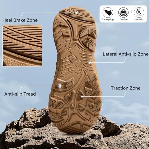 - Duradera y protectora: esta parte superior de botas de senderismo para hombre está hecha de tela a cuadros, que es duradera y antipinchazos. Parte del cuerpo hecha de material de TPU, que es resistente al desgaste. La entresuela de EVA, ligera y flexible, proporciona una excelente amortiguación para el trabajo o el senderismo. Suela exterior todo terreno, gran agarre con diseño de patrón geométrico, botas de trabajo antideslizantes para hombre. La puntera y el talón reforzados brindan protección total, anticolisión y soporte para el tobillo. Traje para botas tácticas, militares, de combate, de caza,