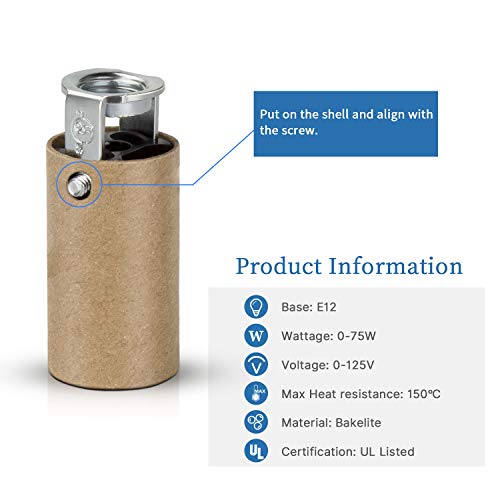 - DiCUNO E12 candelabra base bulb holder with cardboard insulator cover, a good choice for your E12 socket project.