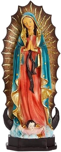 - Hand-Painted Elegance: Juvale's Our Lady of Guadalupe statue, meticulously crafted from resin, showcases exceptional hand-painted detail. This Virgin of Guadalupe altar decor captures Mary's serene beauty, ideal for any Catholic holiday Mary statue display