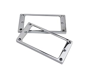 - Benefits / Features: - No Mounting Screws included. - Perfect replacement, great fit and finish. - Enhance the appearance of any electric instruments. - Two pieces set great for neck/bridge humbucker pairs. - Really dresses up humbucker mounts by covering hole edges. - Metal construction, stable and sturdy, not easy to deform. - Great for new builds and repair/replacement. - Pickup frame fit for electric guitar or other similar guitar parts. - Wonderful DIY parts for guitarists or luthiers. Dimensions: - Outside dimension (L x W): Approx. 3.64 x 1.82 inch / 92.5 x 46.3mm - Mounting Screws Distance (L x W): Approx. 3.2 x 1.46 inch / 81.4 x 37.2mm (Outside) - Two HEIGHT of 2 pickup rings: Approx. 5.88mm / 0.23 inch; 7.88mm / 0.35 in - 6 Colors available: Bronze, Black, Rose Red, Chameleon Rainbow, Gold, ChromePackage Includes: - 2 x Pickup Mounting Rings - No Mounting ScrewsNote: Due to different production batches of guitar and pickup frame, some covers need to be sanded to match the guitar. There might be 1-2mm error in the manual measurement. If for any reason you're not satisfied with your order, just let us know and we'll fix it asap.