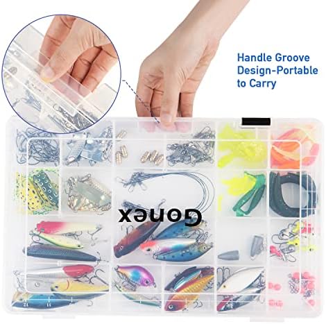 Gonex Fishing Tackle Boxes, 3600 3700 Tackle Trays with Adjustable Dividers, Clear Plastic Tackle Box Organizer Storage for Fishing Lure Bait Hook Jewelry Craft Beads Earring Container, 3 or 4 Packs