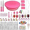 390 Pcs Cake Decorating Kit,with Cake Turntable & Leveler,48 Numbered Icing Tips,7 Numbered Korean Skirt Tips,2 Spatulas,3 Comb Scrapers,100 Pastry Bags,150 Paper Cupcake Liners