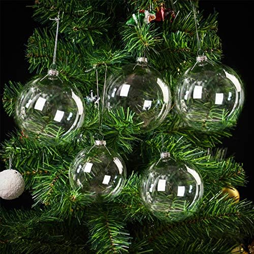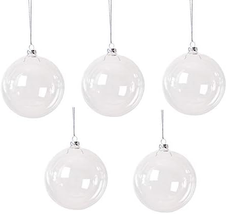 5pcs Heavy Duty Glass Transparent Round Baubles Christmas Tree Clear Ball Ornaments DIY Fillable 3.94inch
