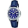 Reloj de mujer Casio LTP-V004L-2B con banda de cuero azul y esfera azul analógico de vestir con fecha