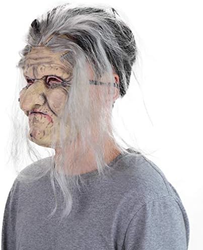 About our store: We are a professional and experienced party products seller on Amazon. We provide variety of animal masks and Halloween costume masks. We provide high-quality synthetic party wigs for adults. We provide laugh and funny for your family and any other parties if you are satisfied with our products☺☺☺.Product Datails: Style: Old lady face mask with gray hair. Material: Made from 100% natural latex with normal latex smell. One size: Roomy enough fits most adults and teens. Usage: Used in Christmas, Easter, Halloween, and any kinds of festivals and parties.Tips: Our masks and wigs are photoed in the studio, and color maybe a little different from the physical product. Our masks are made from natural rubber latex, smell of latex will disappear when you open the package. You can trim eyes if you think it is necessary or makes it more comfortable and fit.
