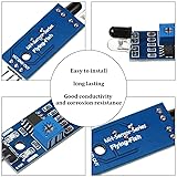 - 20 Pieces IR infrared obstacle avoidance sensor module 3-wire reflective photoelectric sensor module compatible with Arduino/Raspberry Pi 3/Smart Car Robot Feature: When the module detects an obstacle in front of the signal, the green indicator lights on the board level, while the OUT port sustained low signal output, the module detects the distance 2 - 30 cm, detection angle 35 degree, the distance can detect potential is adjusted clockwise adjustment potentiometer, detects the distance increases. Counterclockwise adjustment potentiometer, reducing detection distance. Infrared reflection detection: The sensor active infrared reflection detection, target reflectivity and therefore the shape is critical detection distance. Where the minimum detection distance black, white, maximum; small objects away from a small area, a large area from the grand. Connect to: The sensor module output port OUT port can be directly connected to the microcontroller can also be directly drive a 5V relay; Connection: vCC-VCC; GND-GND; OUT. Usage: Can be applied for 3-5V direct current power supply modules. When the power is turned on, the red power indicator light. Using the comparator LM393. Each module has been shipped threshold comparator voltage adjusted by potentiometer good, non-special case, do not adjustable potentiometer. Specification: Interface: 1. VCC: external 3.3-5 voltage (can be directly connected to 5v MCU and 3.3v MCU) 2. GND: gND external 3. OUT: small board digital output interfaces (0 and 1) Connection : vCC-VCC; GND-GND; OUT Board size: 3.1 x 1.5 cm/ 1.22 x 0.59 inch, with the screw holes of 3mm, easy fixed installation Package includes: 20 x Infrared obstacle avoidance module Note: The mention of brand names and any related models above are only for purposes of demonstrating compatibility, our trademark is Frienda.