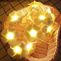 - Light Color: Warm White Light LED Quantity: 40 LEDs Flower Color: Yellow Material: PE+PVC; Plastic Wire String Length: Approx. 6m /19inch Power: 3 x AA batteries (Not included) Package: 1 Pack 40 LED Plumeria String Lights(Other items are not included) High quality for durable and long-lasting use. Made of high quality EVA materials. The flowers are soft design and pretty sturdy. Lightweight for portable hanging. Characteristic and exquisite flower design with pleasant color and brightness. Wide decoration for Christmas, Wedding, Beach Party, Halloween, restaurants bar decorations, home, garden, wedding, birthday or party lighting, etc.