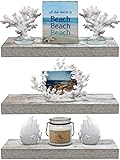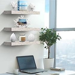 Rustic White Floating Shelves for Wall Storage: 3 Pack 16 Inch Bathroom Wall Shelf - Display charming showpieces for beach decor, coastal decor or home decor items, and other prized possessions while offering functional wall bookshelf, book shelf or bathroom shelf storage. Our beach bathroom decor shelf Measures approximately 16.25" L X 5.50" W 1.50" thick - The shelf colors might be a bit different from the pictures due to the different lighting and screen settings Free Up Space: Maximizes Storage shelf space while taking up zero square feet - Reduces clutter and highlights wall decor in compact spaces - Sorbus Floating Shelves for Wall Provides unique shelving solutions to any style home, coastal decor, beachy decor, studio apartment, Fireplace Mantel Shelves, wall decor for bedroom, wall decor living room, bathroom decor sets, or bathroom wall decor Decorate & Display: Sorbus Decorative shelf for wall Adds character to any modern, traditional, rustic, or farmhouse decor home & kitchen styles - Contrast wall mounted shelves at staggering heights on the wall for a more energetic result - Mount side-by-side for a clean, streamlined look - Enhance decor and fill in empty wall space above a desk, fireplace, entryway, vanity, between windows, bathroom shelves, and so much more Versatile & Functional: Hang our rectangle wall shelf in the bedroom or bathroom shelves over toilet, place under a mirror in the entryway, or exhibit family photos gallery style in long hallway - Showcase trophies and accolades near the fireplace, use to display kitchen decor or hold spices and jars - Utilize as laundry room decor, over toilet storage shelf, living room wall decor, corner bookshelf, bathroom decor or office wall decor Easy Installation: Wood Wall Mounted Shelves with Invisible Brackets, Mounting hardware INCLUDED, the Hanging shelves are made of beautiful MDF with PVC + Bracket - Sturdy enough to arrange and display your favorite small objects - Attaches firmly to the wall without visible support - Minor assembly required - Supports up to 22 pounds per shelf - Measures approximately 16.25 inch L x 5.50 inch W - Each display shelf 1.5 inch thick