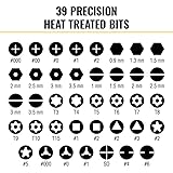 VERSATILE PRECISION SET: Includes 39 bits, perfect for repairing various Apple products and working with precision fasteners POWERFUL RARE-EARTH MAGNETS: Magnets inside both ends of the barrel easily retain fasteners for one-handed driving DUAL-LENGTH BARREL: Double-ended barrel features both standard and extended-reach magnetic bit holders, enabling access to hard-to-reach areas COMPACT CARRYING CASE: Convenient case with stay-shut latch and extra-long bits provides easy storage and quick access PREMIUM SPIN CAP: Free-spinning cap allows your palm to rest in place for optimal control and precise fastening PRECISION-MACHINED BITS: Provide greater engagement with fasteners and are heat-treated for extra strength CUSHION-GRIP HANDLE: Offers greater comfort and torque while fastening