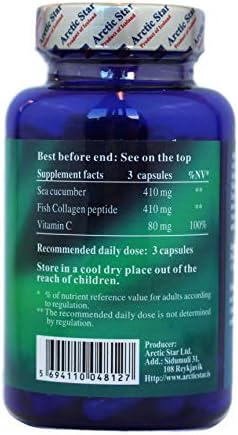 - ORGANIC MARINE COLLAGEN CAPSULES: Arctic star marine collagen capsules crafted using certified wild-caught sea cucumbers (Cucumaria Frondosa) and wild-caught cod sourced from the North Atlantic Sea, beyond Iceland. Our marine collagen capsules feature pure hydrolyzed marine collagen derived from the skin of wild-caught Atlantic cod, with the essential addition of vitamin C. This pure fish marine collagen supplement goes beyond the basics to help provide a comprehensive boost to your health.