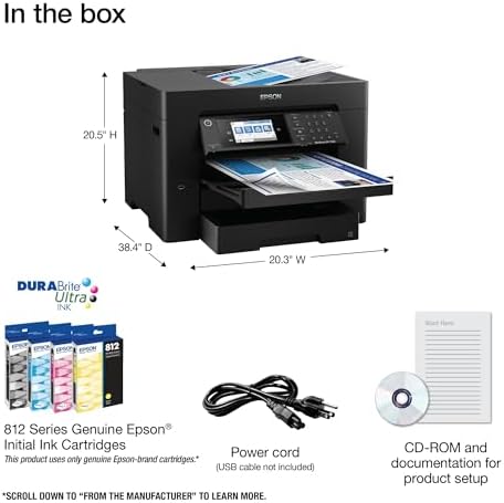 Epson Workforce Pro WF-7840 Wireless All-in-One Wide-Format Printer with Auto 2-Sided Print up to 13" x 19", Copy, Scan and Fax, 50-Page ADF, 500-sheet Paper Capacity, 4.3" Screen,Black