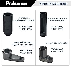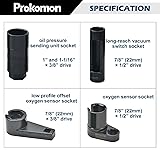 Prokomon 10pcs Oxygen Sensor Socket Set, O2 Sensor Removal Kit, Oil Pressure Sensor Socket Wrench Set 1/2" 3/8" Drives, Oxygen Thermal Oil Pressure Sensor Removers