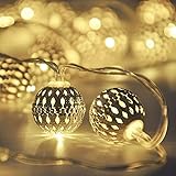 ✔Beautiful Design: Moroccan ball is made of high-quality metal and a unique hollow design, can reflect very beautiful the pattern when it lights on, add charming and romantic feeling at night ✔Battery Powered: The globe string light powered by 3 AA battery (Not included in the package), with two light mode includes Twinkle and Steady. You can change them to meet your need ✔Size: The Moroccan ball are made of Iron. Total 40 Led globe string lights. Wire measures: 16.4ft / 5m. Diameter of each light: 0.98 inch/25mm ✔Convenient to Use: The wire was made of flexible material, keep it portable and easy to store and decorate, you can place it anywhere you want to decorate without being restricted by power and wires ✔Wide Application: The decorative fairy light very suitable for Party, Christmas, Wedding, Festival, etc. Perfect decorations for Bedroom, Window, Walls, Doors, Garden, Patio, Yard, Fence, Balcony, etc