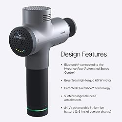 Hypervolt Bluetooth, Featuring Quiet Glide Technology - Handheld Percussion Massage Gun | 3 Speeds, 5 Interchangeable Heads | Helps Relieve Sore Muscles and Stiffness (Hypervolt w/Bluetooth)