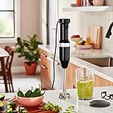 - Brazo de mezcla extraíble de 8", con cuchilla de acero inoxidable de 4 puntas que mezcla rápidamente ingredientes para batidos, malteadas, sopas, hummus y más