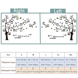 3D family tree wall decor, beautiful tree wall decals create your room full of nature. (Tips:The stickers have brown protective film, and product has undergone high-temperature cutting, which will leave black stains on the brown protective film. Please remove the brown protective film directly, and then you will get the perfect sticker.) Diy tree wall decals size (width x height): S-54*39in, M-83*59in, L-91*69in, XL-109*79in,XXL-131*95in. Picture frames size (each product has 11 picture frames) : S-5'' M-6'' L-6'' XL-7'' XXL-9''. Material: High quality acrylic. Thickness: 1.7mm-2mm (0.078 in). Waterproof, doesn't fade deform. Family wall decor apply to smooth and clean surfaces, such as smooth walls, glass, metal, etc. Our technical team has spent two years developing this latest viscose, when you just paste the it, if the paste position is wrong, you can immediately take off the sticker, and then paste it to the correct position!! (limited to:when the product is just pasted on the wall, you can immediately peel it off.) Tree family wall decor suitable for living room, bedroom, office. picture frames collage wall decor, photo frames stick to wall, it is also a very meaningful thing for Christmas and Thanksgiving. You will receive a box of sticker parts and all tools. Please be patient to splic this DIY picture frame tree wall decals, you can also enjoy the process of creating artworks with others.