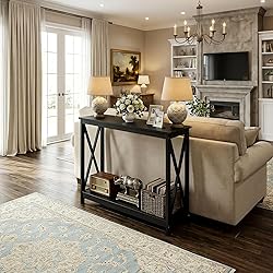 【Stable and Durable Entryway Table】-- This entryway table is constructed of high-quality MDF material, which is robust enough for daily using, weight capacity:110 lb each layer. 2 sides X-design is not only strengthens sturdiness and stability, but also add appealing fashion to your home 【Compact 2 Tiers Storage Space】-- This hallway table overall dimensions is 39.37'' L x 11.81'' W x 31.61'' H. 2 tiers design, table surface provides a great open space for displaying bouquets, scent candles, photo frames, potted plants, and handicrafts etc. 1 open bottom shelf for extra storage area, you can put anything you want 【Multi-Function Sofa Table】-- ZENY narrow sofa table is compact but versatile, you can use it as a console table for living room, or couch table behind the couch, or bookcase for home & office, or entry table in entryway, front hall, foyer, etc. Our sofa table is convenient and works great in anywhere you like 【Decor Your Home】-- This simple and modern console table will complements any decor and walls in your house perfectly. Lightweight makes it easy to move, bringing function to your living area without taking up too much space 【Easy to Assemble and Clean】-- This narrow sofa table has stable construction, easy to assemble. The table surface and the line are smooth, you can simply wipe it with a cloth, easy to clean. Any questions please feel free to contact us