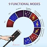 9 Functional Modes - 3 Sound-Activated Modes (Dynamic sound activated Red/ Blue/ Red&blue light)+ 3 Flash Modes (Red flashing/ Blue flashing/ Red&blue flashing)+ 3 Lighting Modes (Red Star/ Blue Star/ Red&blue Star)+ Power off 24 Lighting Effects - Because the lights on the market are not bright enough, we upgraded the product. We made eight patterns for each color, a total of 24 Lighting Effects(3 modes are Sound Activated Strobe.Through rotating the head of star projector, , you can enjoy a variety of pattern modes) Sound Activated Modes - The star light with sound control function, will dance to music.colors will change according to the beats of music, even react to clapping, speaking and laughing as long as close enough to the light Beautiful and Romantic - Small size and light weight, unique design is great for Car,bedroom,camping,parties.or adding a interesting and romantic atmosphere to your Leisure living area. And the star light can be powered instantly by plug in any USB interfaces Apply to multiple scenarios - This starry skylight can be used in room decor, car decor, A excellent ambience maker for parties, is suitable for Birthday parties, Friend/Family Gathering, Disco party, Dance party, Wedding Show, Holiday, Christmas, DJ Bar, Xmas, Car, Camping, Outdoor. This starlight can be used as a special gift for friends or christmas gifts