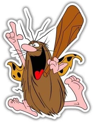 decals Captain Caveman (Set of 3) Cartoon Dinosaur Sticker - Waterproof, Brown, Vinyl, for Glass, Plastic, Metal, Wall, Window, Laptop, Car, Truck, Tablets