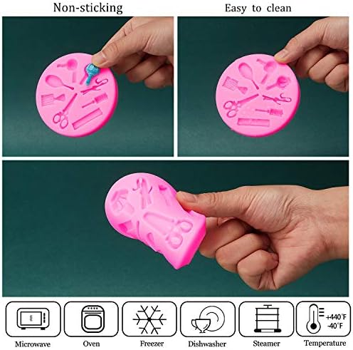 2 Pieces makeup tools design fondant cake molds makeup designed silicone molds scissors hair tools shaped fondant mold for chocolate, pudding, candy, jelly, soap, cake cupcake supplies, 2 styles Good heat resistance: The fondant cake molds can withstand temperature ranges from minus 40 to 220 degree Celsius, good heat resistance, suitable for microwave, oven and refrigerator. Wide applications: Suitable for you to make snack, cookies, cake and cupcake topper, fondant and more, you can also use the silicone cake molds to create soap, scented candles and more with your imagination, good to make delicious and nice looking desserts for birthday party, wedding party, anniversary, Christmas, Thanksgiving and more. Specification: Material: silicone Color: as pictures shown Quantity: 2 pieces Package include: 2 x Makeup designed cake molds Note: Manual measurement, please allow slight errors in size.