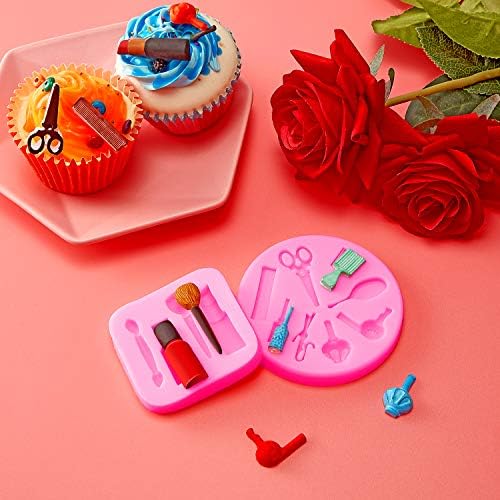 2 Pieces Makeup Tools Design Fondant Cake Molds Makeup Designed Silicone Molds Scissors Hair Tools Shaped Fondant Mold for Chocolate, Pudding, Candy, Jelly, Soap, Cake Cupcake Supplies, 2 Styles