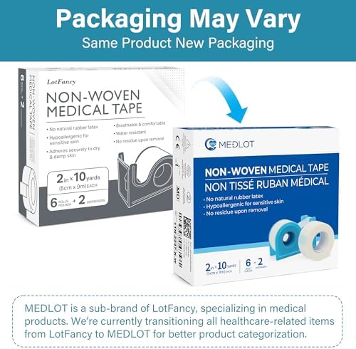 - SAFE & CONVENIENT – Hypoallergenic and Latex-free. Our general use medical tape is easily torn by hand and excellent for repeated applications on sensitive skin, fragile skin and elderly patients