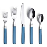 ANNOVA Silverware Set Stainless Steel Colorful Tableware Kitchen Flatware Set Utensils, Includes Dinner Knives, Forks, Spoons, Salad Forks & Dessert Spoons (Blue, 20 Pieces)