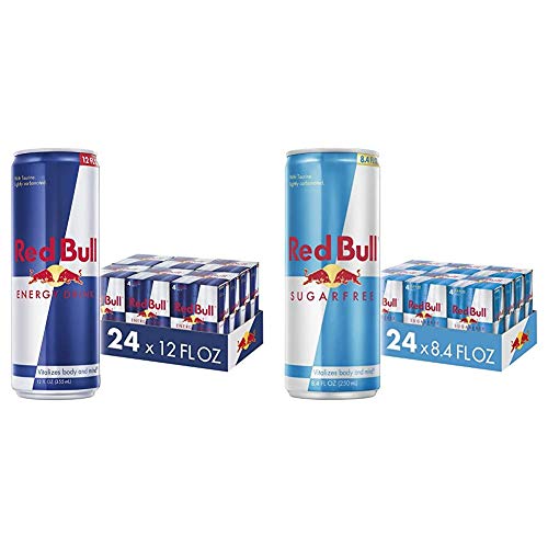 Bebida energética Red Bull, 12 onzas líquidas (24 unidades) (6 paquetes de 4) y bebida energética sin azúcar, sin azúcar, 8.4 onzas líquidas (24 unidades)