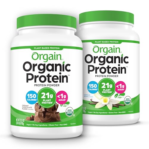 - Includes 1 (2.03 Lb) Orgain organic plant based vanilla bean protein powder and 1 (2.03 Lb) Orgain organic plant based chocolate fudge protein powder.
