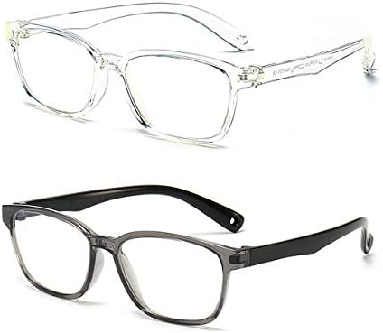 Kids Blue Light Blocking Glasses 2 Pack, Anti Eyestrain & UV Protection, Computer Gaming TV Phone Glasses for Boys Girls Age 3-9 (Clear+ Transparent Black)