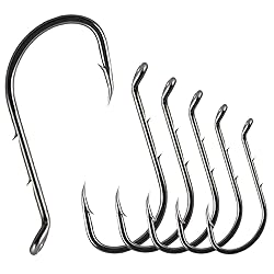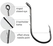 SHARP - The octopus fishing hook is super sharp, always assure good penetration to help you catch more fish easily. STRONG - Premium high carbon steel makes sure that octopus hook is of durability and reliability. The black chrome finish provides extra corrosion resistance. HIGH PERFORMANCE - The octopus baitholder hook has 2 barbs, with off-set point and closed eye, leaves no chance to fish escape. WIDELY USED - For Freshwater and Saltwater. Best suited to catch fish like Pike, Bass, Salmon, Walleye, Perch, Panfish, Catfish, etc. MULTI SIZES - Different sizes available to choose, meet kinds of demands. Size #4 #3 #2 #1 1/0 2/0 3/0 4/0 5/0.