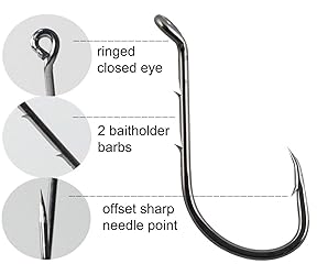 - Baitholder Hooks Octopus Fishing Hooks 100pcs Barbed Baitholder Fishing Jig Hooks Offset Circle Octopus Hooks Extra Sharp High Carbon Steel Bait Holder Hooks for Freshwater Saltwater Fishing Live Bait Fishing, Bass Walleye Striper
