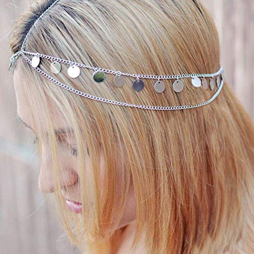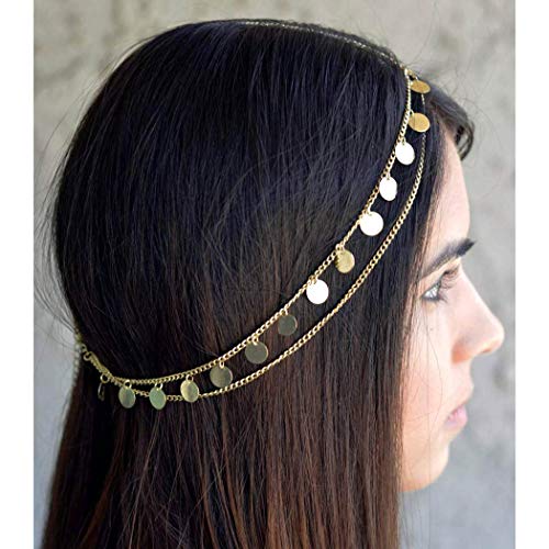 Boho Headbands Jewelry Sequins Head Chain Head Piece Layring Hair Pieces Spring Holloween Summer Head Chains Gold Hair Accesories for Women