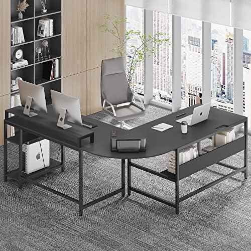 SEDETA L Shaped Computer Desk with Hutch, Drafting Drawing Table for Artists, 68.9 inches Corner Computer Desk for Home Office, Workstation Table with Monitor Stand Riser and Tiltable Desktop, Black