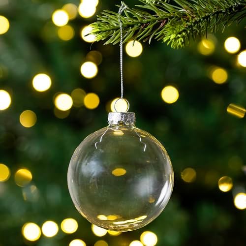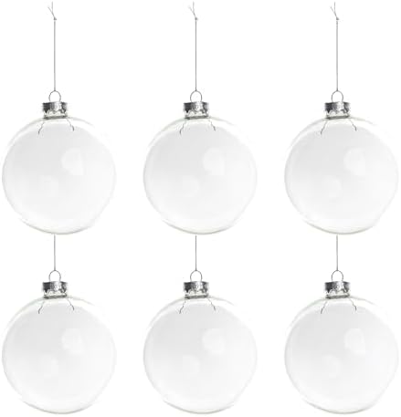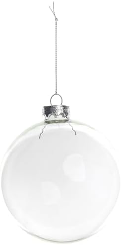 Add a personalized touch to your holiday decor with these shiny, clear iridescent ornaments. Perfect for DIY customization—just remove the cap to fill with glitter, faux snow, or small keepsakes. Ideal for decorating Christmas trees, wreaths, garlands, or creating personalized holiday gifts. Product Features:. 6-piece set. Color: clear. Finish: shiny. Equipped with silver ornament caps. Come ready to hang on silver cords. Removable ornament caps Dimensions: 3.25" (80mm) diameter. Cap opening: 0.62" diameter. Material(s): glass/metal Note: Can only be filled from the top opening covered by the ornament cap