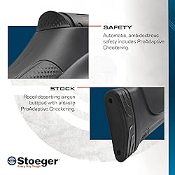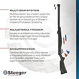 FUNCTIONALITY AT ITS BEST: The new, patented Stoeger S3 integrated sound moderator combines the functionality of internal air-regulating baffles with a newly developed decompression chamber, significantly reducing noise. FIRST IN THE WORLD: The S3 is the first system of its kind to feature interchangeable front fiber-optic sights, enabling the perfect combination of functionality and technology. FIT YOUR STYLE: Our Multi-Grip System lets you adapt your air rifle to fit your personalized style and shooting comfort. Choose between an embossed grip and Stoeger's innovative ProAdaptive Checkering to make your S4000-E your own. SECURE YOUR GRIP: Our exclusive ProAdaptive Checkering allows for a comfortable and secure fit in any weather condition or shooting position. Located on the butt pad, stock, pistol grip, safety, forearm, and barrel grip. 5 YEAR LIMITED WARRANTY: Your new airgun is warranted for 5 years from date of purchase against any defect in materials or workmanship in the metal parts of your product.