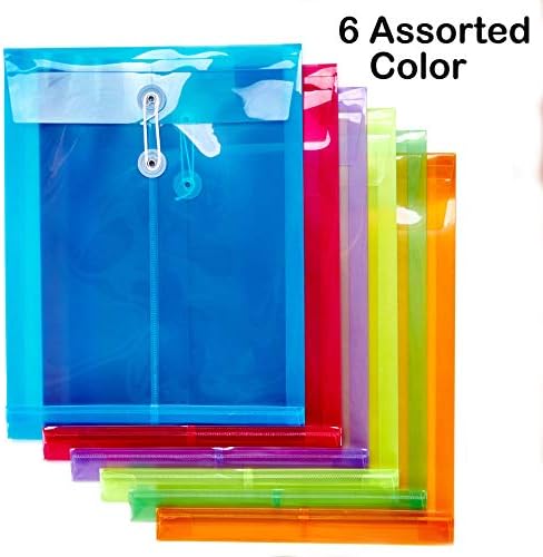JIZISO expandable larger capacity premium quality clear plastic envelopes file folders with button & sting tie closure, top loading, Size 12.8”x 9.8”, for Letter A4 documents project paper and files fits any kind of occasion. Ideal organization tool Easy filing with the variety of colors, keeps projects file paper together and neat. Expanding files Envelopes large capacity filing envelopes will be your great organization tool. Perfectly storage receipts, taxes, personal papers, project, puzzle, photos and important document. Amazing assortment of colors 6 Bright Colors help you sort documents more effectively. Translucent material can easy see through the contents. Strong, durable, scratch-resistant and water-resistant Acid free and PVC free Poly material, sturdy and durable. Ultrasonic hot press bonding technology, the edges are not easy to separate. After long time uses, it still could secure your important document well. Material: Environmental protective premium Polyethylene Package: 12 Pack assorted colors plastic envelopes. Color: Red/Green/Blue/Orange/Purple/Yellow Loading Way:Top loading Size:12.8 inch x 9.8 inch, with 1-1/4 inch expandable gusset.