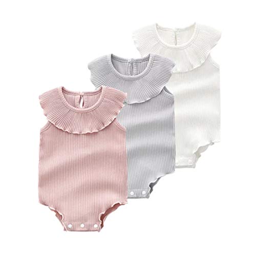 ABOUT THIS ITEM ❊Material: 100% Cotton ❊Style: Solid color flounce collar bodysuit. Button on the bottom makes it easy for wearing and changing diapers. ❊Colors: Light Pink, Light Gray, Pretty White❊Suggested age: 0-3m ⤑ 3-6m ⤑ 6-9m ⤑ 9-12m ❊Occassion: Daily, weekend activities, summer vacations, family events ❊Size Chart: ---------------------- Size Chart(cm)----------------------Size————Length———Chest———Shoulder Width——Suggested Age59—————-38—————50——————20———————0-3 Months66—————-41—————53——————-21———————3-6 Months73—————-44—————56——————22———————6-9 Months80—————-47—————59——————23———————9-12 MonthsNote: Due to different gesture measurements, there may be 1- 2cm error.relevant data for reference only, based on the actual clothes received