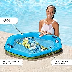Deluxe pool chair: Ultra-comfortable chair that contours and supports with 2 seating positions; sit-back in lounge mode or sit-up in chair mode. Air mesh pool chair: This lounge chair with unique design and luxury fabric flexes with your body and includes 2 carry handles Soft fabric cover: Wire-free pool lounger comfortably suspends you in the water Pack ‘n go: Compact and quick to inflate for ultimate portability; perfect for a day at the pool or a week of vacation Dimensions: 39 x 38 inches; weight capacity: 250 pounds; recommended for ages 15 and up; packaging may vary