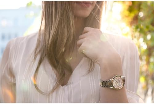 From the 32mm two-tone stainless-steel case to the two-tone bracelet with a deployment clasp, the Arezzo from Citizen marries elegant style with sporty function. It has a white three-hand dial with Roman numerals, is accented with diamonds and uses Eco-Drive technology, so it is powered by any light, never needing a new battery.
