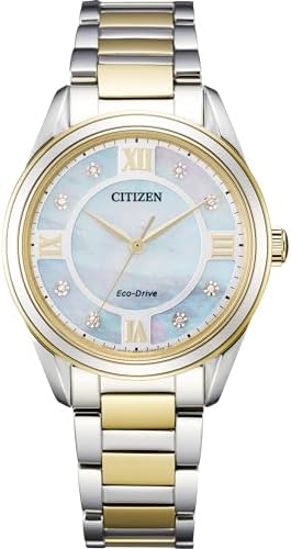Citizen Women's Eco-Drive Dress Classic Arezzo Diamond Two-Tone Stainless Steel Watch, White Dial (Model: EM0874-57D)