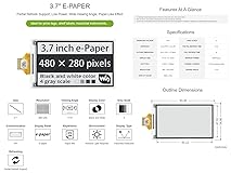 Waveshare 3.7inch E-Paper E-Ink Raw Display Compatible with Raspberry Pi 4B/3B+/3B/2B/B+/A+/Zero/Zero W/WH/Zero 2W Series Boards 480×280 Pixels 4 Grey Scales Supports Partial Refresh