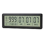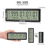 - Upgraded Big Digital Countdown Days Timer Clock Product Features: 1. Long setting countdown time: 999 days, 23 hours, 59 minutes and 59 seconds. 2. Upgraded version: bigger size & Count-up function. Product size: 15.5cm*5.7cm*1.1cm/ 6. 1*2.2*0.4in. LCD screen size:13.8cm*4cm/5.4*1.6in. 3. It will alarm for sixty seconds when arriving at your setting number. 4. With clock function. You can switch between 12 and 24 hours systems. 5. Easy to set. 6. Two ways to place it. With magnet back and movable bracket. 7 Wide application: vocation, wedding, new baby, retirement, meeting, study, and so on. How to set clock: 1. Hold the CLOCK button until you see the clock number “hour” start flashing. 2. Press UP/START or DOWN to adjust that particular number. 3. Keep hitting CLOCK to set minutes – seconds. 4. Press CLOCK again to start. * In the CLOCK mode, press the DOWN button to switch between 12 and 24 hours systems. How to set countdown time: 1. Hold the SET button until you see a number start flashing. 2. Push the SET button until you get to the number you want to change. 3. Press UP/START or DOWN to adjust that particular number. Hold UP/START or DOWN, the number will change quickly. 4. Keep hitting SET until the screen stops flashing. 5. Press the UP/START button to start or pause the counting down. * Press and hold the UP/START and DOWN buttons at the same time to reset to 0. How to set counting-up: 1. If it is timing, press the UP/START button to stop it. 2. Press and hold the UP/START and DOWN buttons at the same time to reset to 0. 3. Press the UP/START button to start the counting-up. Specification: - Requires: Internal 2 x CR2032 batteries (Included) - LCD screen size: 13.8cm*4cm/5.4*1.6in - Product Dimension: 15.5*5.7*1.1cm / 6. 1*2.2*0.4in - Package Size: 16.5*6.5*2.2cm / 6.5* 2.6* 0.87in - Product Weight: 106.2g / 3.75oz - Gross Weight: 125.1g / 4.41oz Package Includes: 1* Digital timer clock + 1* Bracket + 1* User manual + 2* CR2032 batteries (Internal) Warranty: 3 years