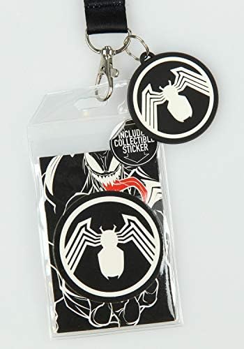 Bioworld Marvel Venom Lanyard ID Badge Holder With 2" Character Logo Rubber Charm And Collectible Sticker
