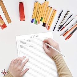 ORGANIZE & PLAN AHEAD – This notepad is printed on one side and is great for creating to-do lists, daily and weekly goals, organizing daily schedule, deadlines and due dates, activities and groceries checklist, bucket list and many more! SUPERIOR PAPER QUALITY – Made from durable and thick 24lb Bond/ 60lb Text (90 GSM) paper that is acid and lignin-free which prevents yellowing, fading and brittleness of paper. So if you want to buy it in bulk, this paper will last you through for a very long time. DIMENSIONS – Measures 8.5” x 11” (Letter Size) and has lots of space for notes. Helping you STAY ORGANIZED while keeping it CONVENIENT. EASY TO WRITE ON – It’s a very thick paper with a smooth white matte surface ensuring a bleed and smudge-free writing with no show through. It’s ruled on one side but is writable on both sides and works great with ballpoint pens, fountain pens, gel pens, markers, etc. GET MORE AND SAVE MORE – This is a premium quality paper without the price of one! A great addition to homes, classrooms and offices.