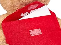 - Give away a romantic love message, an invitation or a voucher Everything that fits into the red felt envelope with the inscription "For You" (inside dimensions 4.72 inches (12 cm) W x 3.54 inches (9 cm) H) is possible. For Valentine's Day, Mother's Day, birthdays or to say thank you: Proof of love like this little teddy can always be given as a present - even just for fun.With or without envelope The envelope can be easily removed from the teddy bear by the presentee later, as it is attached with only a few stitches. Or get creative and knot the ends of the threads to keep the envelope on the teddy.Easy to fall in love Whether you want to tell your partner or someone close to you how you feel: Whether you want to tell your partner or someone close to you how you feel: This cute little teddy bear is a great gift idea and a real favourite among your cherished memorabilia.Pushing and cuddling allowed! The small soft plush bear is made of high quality plush and is processed in best quality. He consists of a soft and durable plush material with a fluffy interior.comfortable size This cute plush teddy fits with its size of 9.84 inches (25 cm) easily into a car or e.g. on a work table. With its practical hanger, it can be hung up decoratively anywhere.This teddy bear is taking everybody's heart by storm Dark brown beady eyes and a very sweet smile. Big red ribbon Extra-soft, very cuddly fur Soft, luxuriant inner fillingmaterial: 100% polyesterWashable at 30 °Csize teddy bear height 9.84 inches (25 cm) width 7.87 inches (20 cm) depth 7.87 inches (20 cm)size felt envelope inner dimensions: 4.72 inches (12 cm) width x 3.54 inches (9 cm) heightThis BRUBAKER Teddy is available in different sizes, colors and with hearts or envelopes, on which different love messages are written.