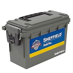 - Security and dry conditions are essential for your ammunition. That’s why the Sheffield 12726 Field Box was re-designed to retain your ammunition’s quality in a dry, water and dust-resistant environment. Our ammunition storage boxes protect your ammunition with a dry, gasket-sealed environment. Our tactical ammo box storage is perfect as a 308 ammo box, 22lr ammo box, 223 ammo box, 556 ammo box, 50 cal ammo can, 9mm ammo box, 30 cal ammo can, shotgun shell case, and more. Our rifle ammo box's formed lip keeps the moisture and dust out while the bulk ammo box can's 3 locking options keep prying hands out. These 3 locking options on our ammo cases help prevent tampering and prying into the plastic field box. This pistol ammo case is great for those who need to keep ammunition out of reach of children or to simply prevent theft. The formed lip on our locking ammo case creates a near-airtight water-resistant environment for your 5.56 ammo box, rifle ammo storage, shotgun ammo storage, and more. This ammunition box is ideal in tight spaces, such as a closet, garage, or gun case. The stackable ammo can features a base-to-lid interlocking system that also reduces tipping, providing you with a secure, compact, and slim ammunition container. The size of our Sheffield Field Box makes our locking ammo box an excellent travel companion, whether in the back of a truck or by hand with the folding ammo can storage box handle. The Sheffield Ammo Box is built for your creativity. Our hard plastic ammo can is great for camping gear, as a tackle box, for holding tools, and more, thanks to our plastic ammo storage boxes' portability and stackability. Get creative with our ammo cans plastic container. Don't be without the best American Made sealed ammo can on the market. Whether you’re packing heat in your lockable ammo can or packing for a trip, the Sheffield 12726 Field Box has you covered with a dry, portable, and secure ammo dry box for all your storage needs.
